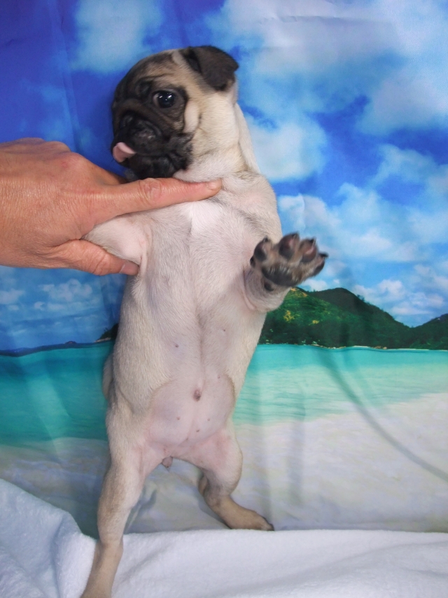このサイトからパグを見つけ、写真を見た瞬間「この子だ」と思い すぐブリーダーさんに連絡し、訪問面会となりました。 この子が気に入ったのはもちろんですが、とても清潔きれいにされていた環境で生まれ、ブリーダーである小林様の人柄ももちろん、色々親切丁寧に教えていただき非常に安心出来ると思い購入を決めました。購入後も定期的にメールいただき近況をお知らせしております。 そして、何かあれば気軽にお問い合わせくださいとも言っていただき 何かあれば相談にのっていただこうと思っております。 どのような環境で生まれ、両親も確認できるのはブリーダーさんから直購入のいいところだと思います。 ペットショップで購入しなくて良かったと思います。 小林様 本当にありがとうございました。 (東京都 男性)