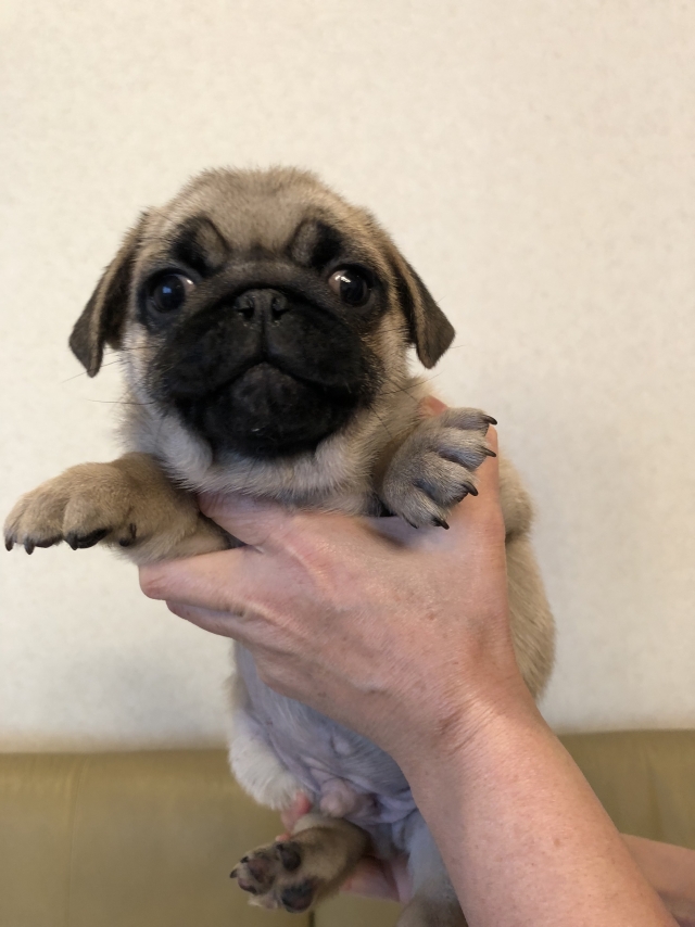 パグの飼育歴は30年以上になります。今年親の代から買っていた 黒パグを亡くしてから家を埋め尽くしているパググッズを見るたびに いつか新しい仔を迎えたいと思うようになりました。 北関東でブリーダーさんを探しているうちに木村様を知り、見学、購入の運びとなりました。 このたび性格も大変おおらかな素晴らしい仔犬をお譲りいただき大変感謝しております。 (茨城県 男性)